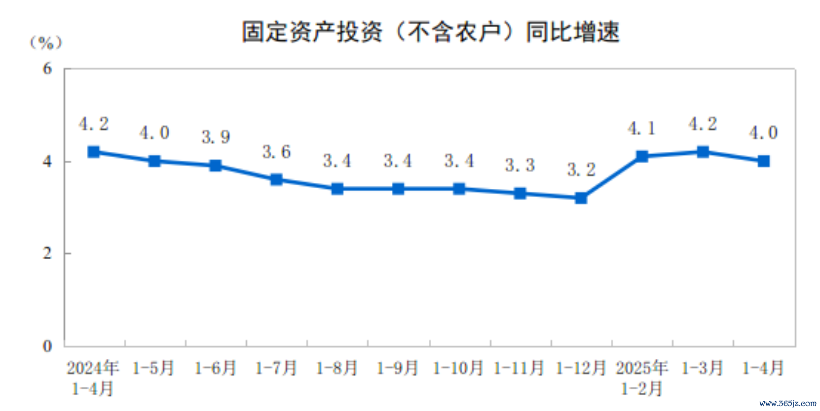 2025年1—4月份,全国固定资产投资(不含农户)147024亿元,同比增长4.0%(按可比口径计算,详见附注7)。其中,民间固定资产投资同比增长0.2%。从环比看,4月份固定资产投资(不含农户)增长0.10%。
