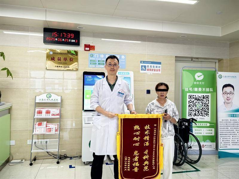 患者谢女士向刘弦医师及口腔科团队赠予锦旗。